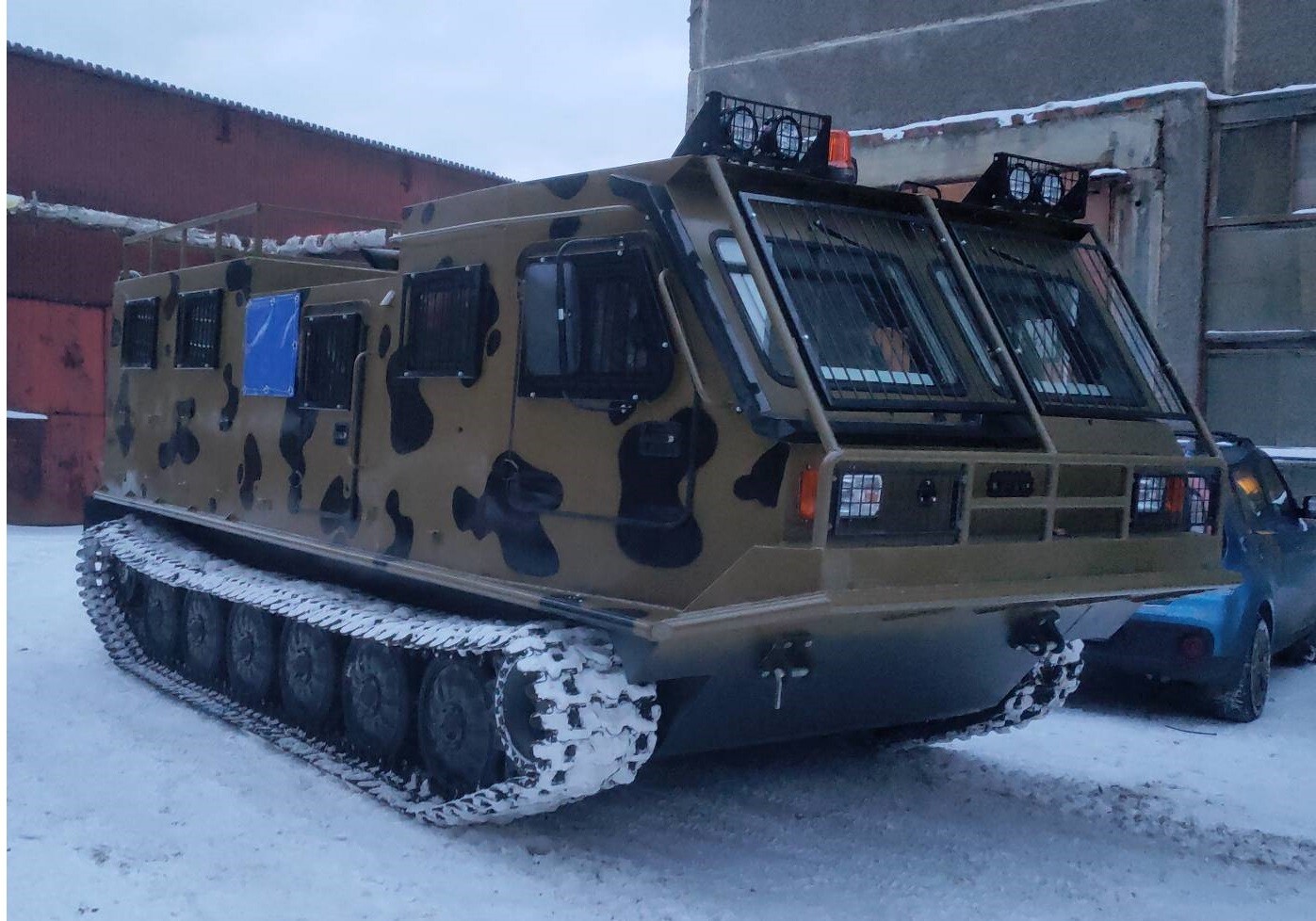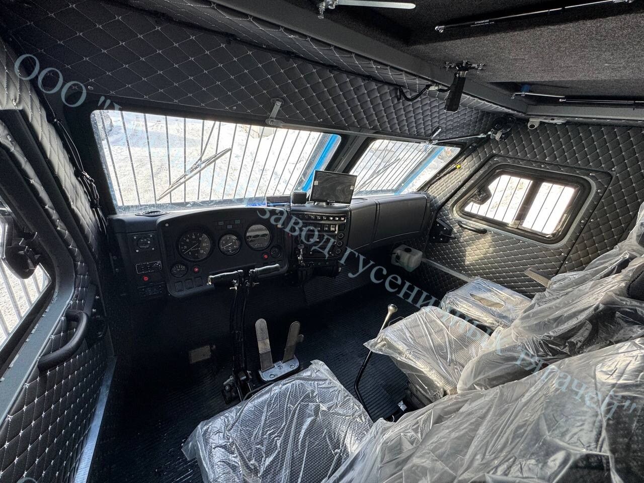 - модернизированная кабина на 7 человек. (вкл. механика водителя), увеличенного размера, внутренняя высота кабины 1450 мм., кабина утеплена негорючим утеплителем из базальтового волокна толщиной 50 мм и обшита композитной панелью 3 мм., обитая декоративным материалом (экокожа), в кабине предусмотрены два лобовых стекла увеличенного размера -1000х600 мм, и два боковых окна - 550х360 мм., в кабине предусмотрены 2 спальных места;